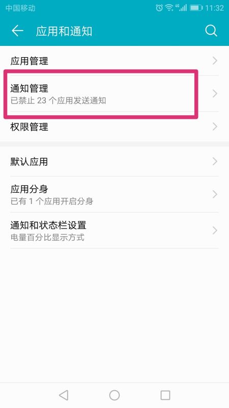 2.单击进入应用程序和通知,如图所示,单击通知管理,然后单击enter。