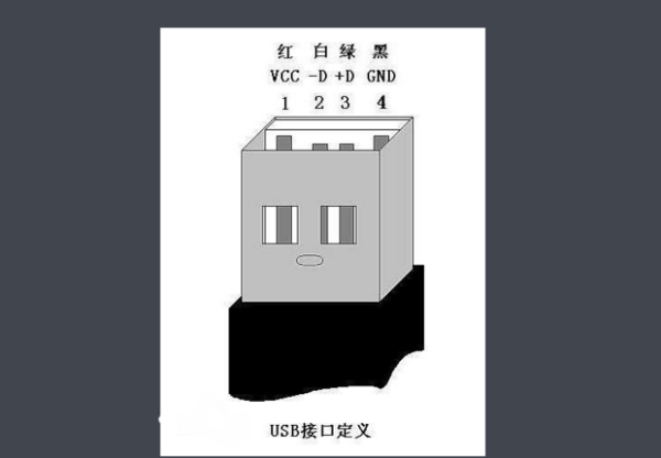 红,白,绿,黑是标准的配线颜色,分别对应1、2、3、4引脚。四根线分别是 1-电源 2-数据 3-数据 4-电源。一般的排列方式是:红白绿黑从左到右。USB是一种常用的PC接口,只有4根线,两根电源两根信号,需要注意的是不要把正负极弄反,否则会烧掉USB设备或者电脑的南桥芯片。