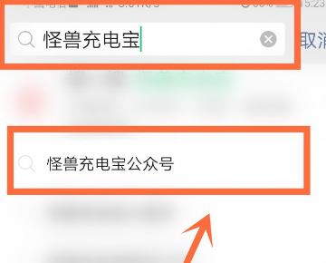 2、进入主界面后,点击右上方的【搜索图标】进入,输入【怪兽充电宝】,并点击【怪兽充电宝公众号】一栏选项进入,如下图所示。