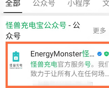 3、进入搜索结果界面后,点击【怪兽充电】的公众号进入,如下图所示。