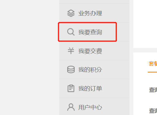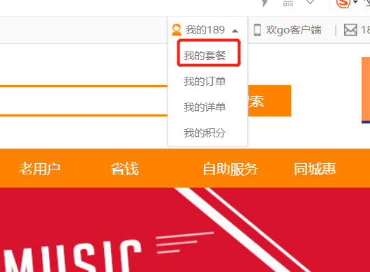 2、在弹出的列表处点击“我的套餐”,会跳转进入用户主页。
