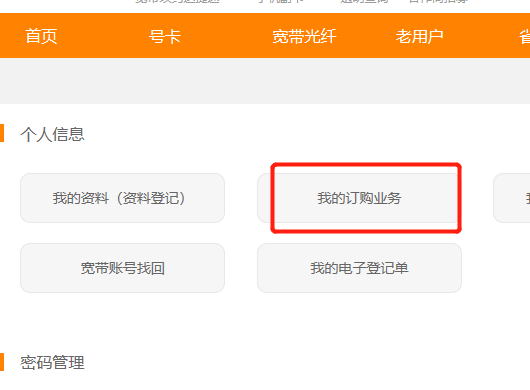 4、在个人信息处点击“我的订购业务”,可以查看你办理业务的时间和信息。
