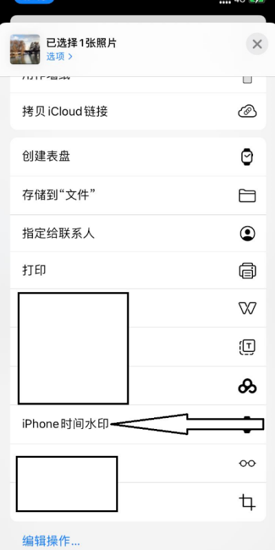 3、接下来就进入到发送的页面,在这个页面往下滑找到“IPhone时间水印”并且点击它。