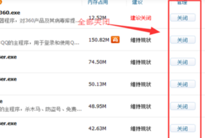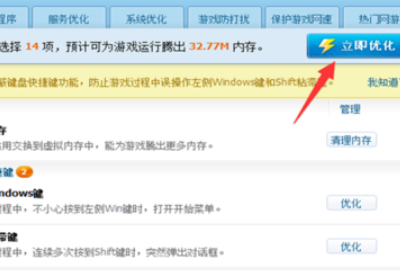 3、立即优化完成后,需要进行手动优化,点击占内存程序这个菜单下,那些和游戏不相干的软件,能关闭的都给关闭了。