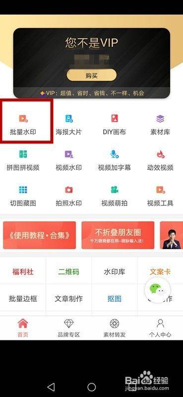 第一步,打开“微商水印相机”,点击“批量水印”,如下图所示。