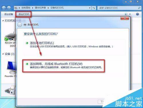 (1)开始--设备和打印机--添加打印机--添加网络、无线或Bluetooth打印机;