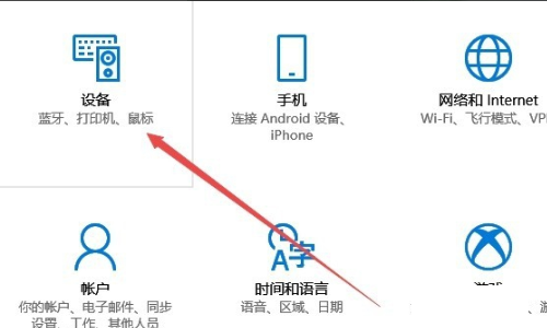 2、这时会打开Windows10系统的“设置”窗口,点击窗口的“设备”图标。