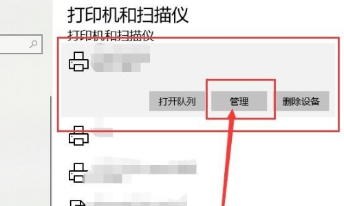 5、上拉选项,在打印机中,选中一个,点击“管理”。