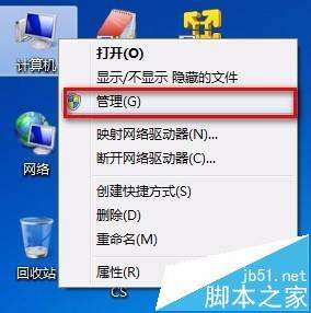 (1)右击桌面上“计算机”图标,选择“管理”;