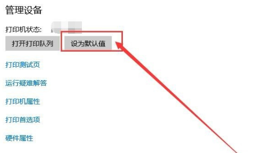 6、在跳转的页面,选择“设为默认值”就是默认的打印机了。