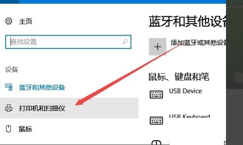 3、可以打开设备的窗口了,点击窗口左侧边栏的“打印机和扫描仪”菜单项。