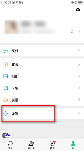 2、点击进入微信以后,点击我,选择设置选项,然后点击进入。