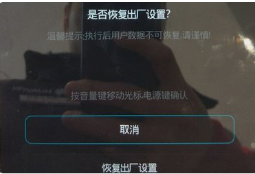 6,用音量上下键控制图标移动到恢复出厂设置。
