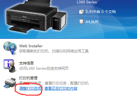 3、之后在“Epson打印机”界面中,点击“调整打印选项”。