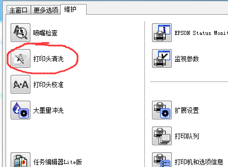4、接着在“调整打印选项”界面中,点击“打印头清洗”选项。