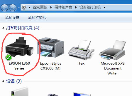 2、然后在“设备和打印机”界面中,双击“Epson打印机”。