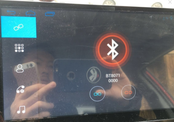 1、首先打开手机的蓝牙功能与车载导航系统的蓝牙功能,实现配对互联。在车载导航的界面上会显示自身的名称与配对密码。