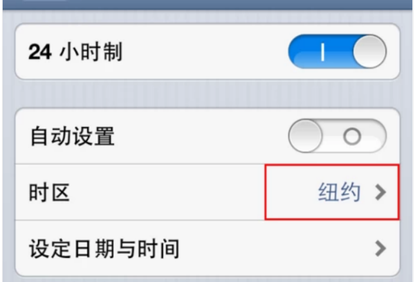 4、这时会发现在"日期与时间"界面上,自动设置是灰掉的,没有被启用。时区显示是“纽约”,时间是上午的8:22分(为了表示的更明显我提前把时区改成了纽约,真正的时区是东八区,我所在的地点是中国.北京)。