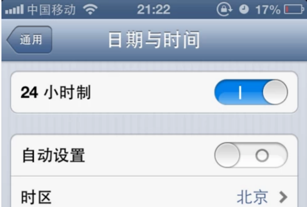 5、滑动滑块,启用“自动设置”功能。如下图所示,这时候你会发现时区自动变成了“北京”,时间也变成了北京时间21:22分。