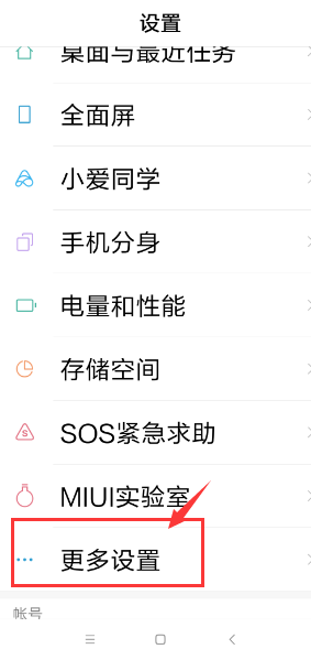 二、进入设置以后,找到”更多设置“一项,点击进入。