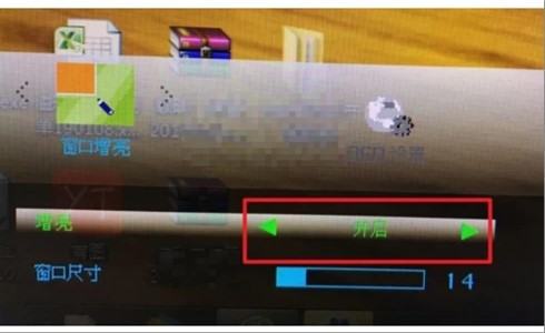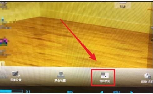 4、通过显示器的按钮,按下带箭头的图标,来调节到窗口增亮这个选项上。