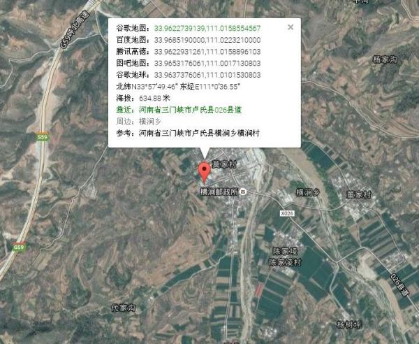 卢氏县横涧乡经纬度大约是多少