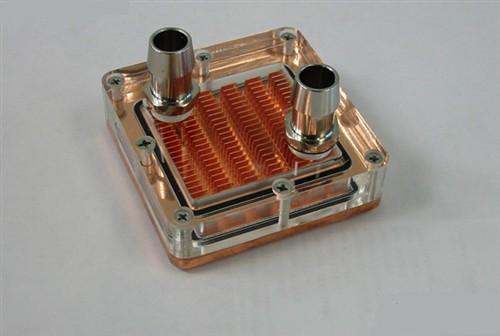 水冷块是一个内部留有水道的金属块,由铜或铝制成,与CPU接触并将吸收CPU的热量,所以这部分的作用与风冷的散热片的作用是相同的,不同之处就在于水冷块必须留有循环液通过的水道而且是完全密闭的,这样才能保证循环液不外漏而引起电器的短路。