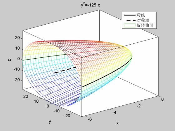 legend('母线','对称轴','旋转曲面','location','northeast')