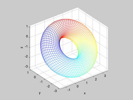 例:绘制母线为x=0,y^2+z^2=1,旋转轴为x=1,z=-y-2的圆环