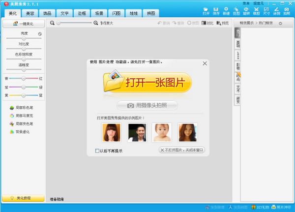 美图秀秀的图片特效、美容、拼图、场景、边框、饰品等功能,可以1分钟做出影楼级照片,还能一键分享到新浪微博、人人网、QQ空间等。