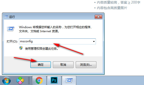 3.打开操作界面后,在搜索框中输入msconfig命令,然后单击ok。