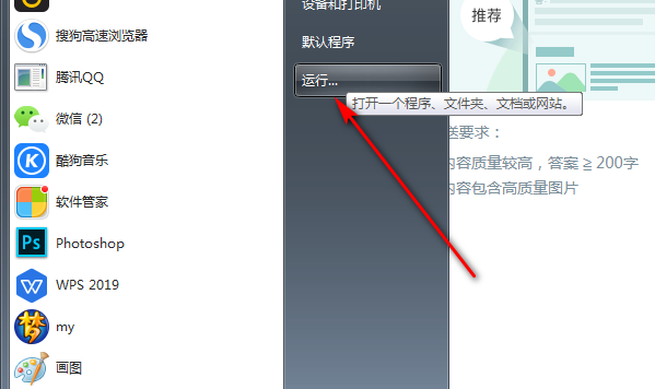 2.输入start选项后,单击run选项。