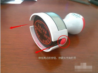 2、先打开最外面的盖子(就是平时盖章时所打开的)