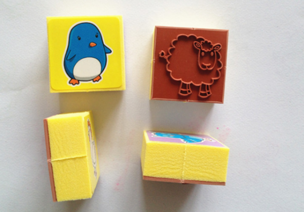另外这个橡皮章是制作出可反复盖印的图案的一种休闲手作形式。刻好的橡皮章结合不同颜色的印泥,可以制造出各种效果。因材质关系,手刻橡皮章的雕刻时间比石刻、木刻短很多。