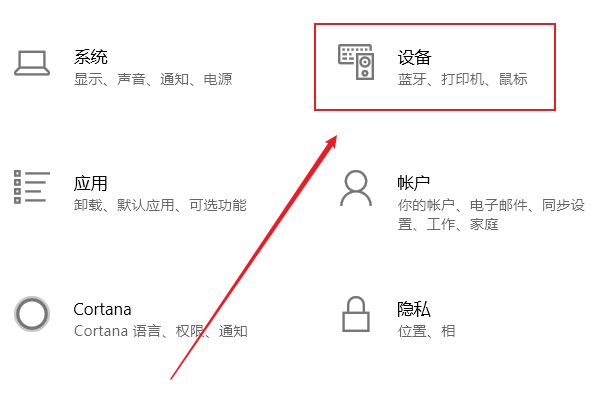 1、在系统设置页面,选择设备选项,进入系统设备管理页面。