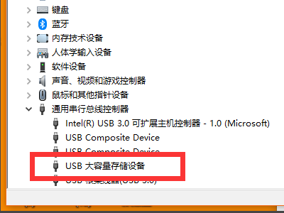 6、“USB大容量存储设备”项恢复显示,如下图所示问题就解决了。