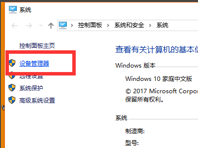 2、在打开的“系统”窗口中,点击“设备管理器”项,如下图所示。