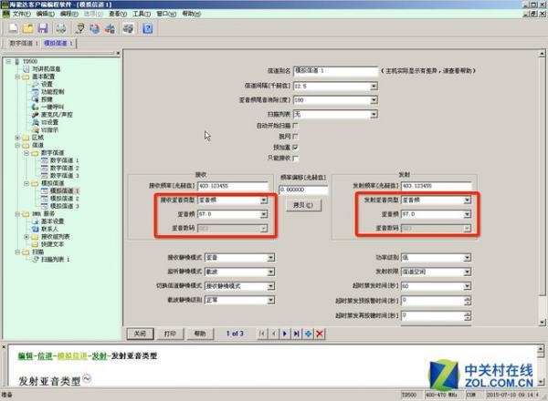 由于海能达TD500商用数字对讲机还支持传统的模拟频率,也就是说可以和老式模拟机进行通联,所以我们也能够在设置选项中,对其模拟频段的频率,和亚音进行设置。