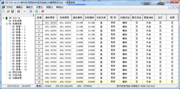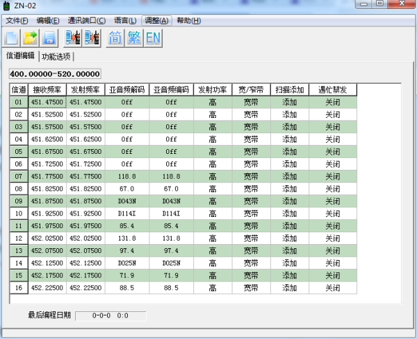 4、本案例的目标是:把中诺ZN520-2C的对讲机调成跟中诺ZN520-2A的对讲机一样的频率,实现双方通信,所以在此之前,我们要下载和安装好两种写频软件。首先我们打开ZN520-2C对讲机的写频软件,其写频软件的界面如下图