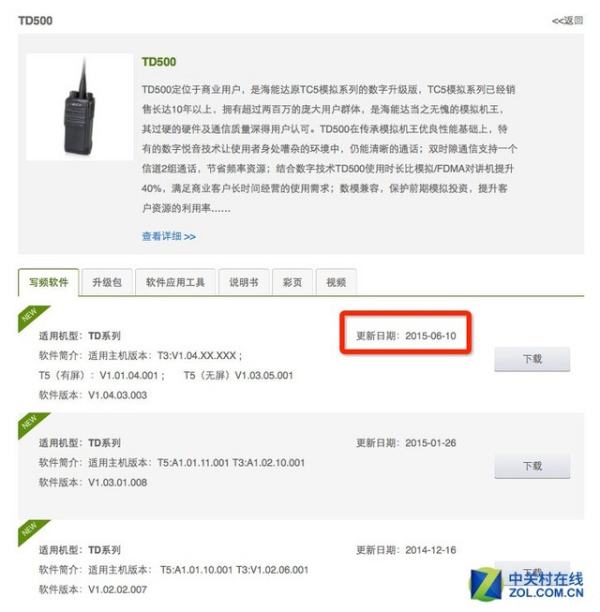 在准备工作做完之后,我们需要去对讲机品牌官网下载相应驱动及写频软件,以海能达TD500为例,直接登录官网进行相应下载即可,非常简单。