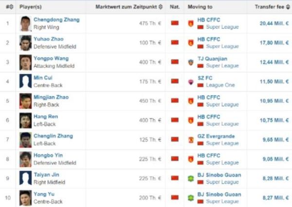 2015年的冬季转会窗口,中超的转会投入超过8500万美元,是2014年冬窗投入的5倍多。巴西一家知名体育公司主管费雷拉在接受采访时说:“他们购买一些巴西球员充实实力,另外还在巴西考察年轻有为的巴西球员。通常欧洲球队只愿意花费三四百万欧元买的人,中国球队会砸出一千万欧元来签下他,然后再给出比欧洲球队更多的工资。”