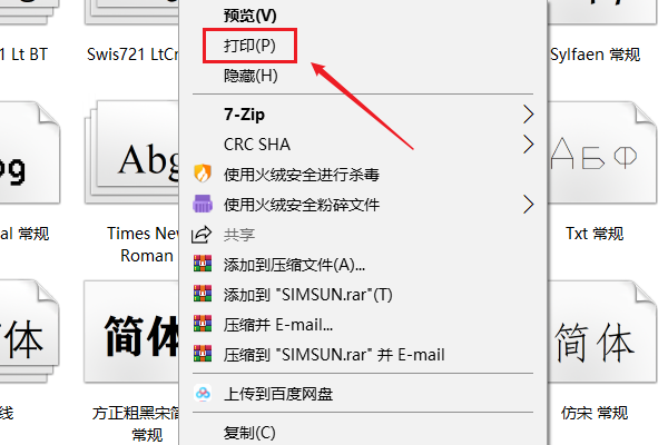 打印系统字体,需要使用在系统字体文件夹里操作。