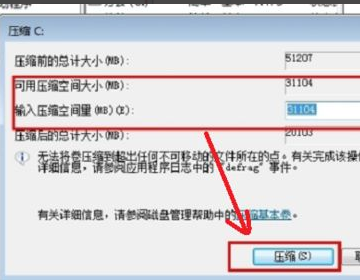 7、弹出压缩对话框,在“输入压缩空间”后的输入框中输入想要压缩的空间,点击“压缩”。