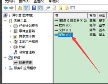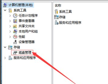 4、打开管理页面后,在此页面找到左下方的“磁盘管理”。