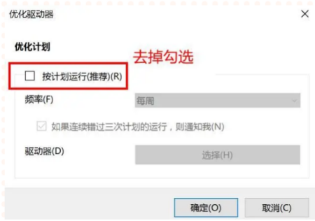 选中磁盘右击【属性】【工具】【优化】。优化完毕后点击【更改设置】,取消【按计划运行】。