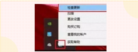 以McAfee为例,我们可以在桌面右下角找到对应图标,【检查更新】并按提示更新后重启。