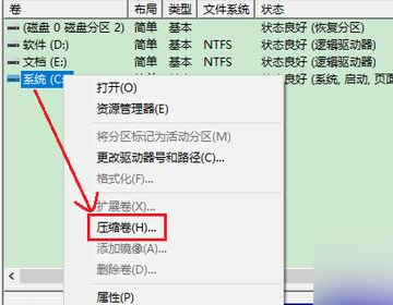 6、单击鼠标右键,出现下拉栏,选择“压缩卷”点击。