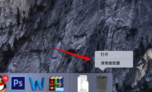 4、如果想要完全卸载,右键点击Dock中的废纸篓,点击右键,选择清倒废纸篓,就可以完全清除要卸载的软件了。