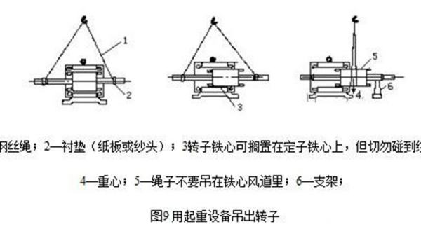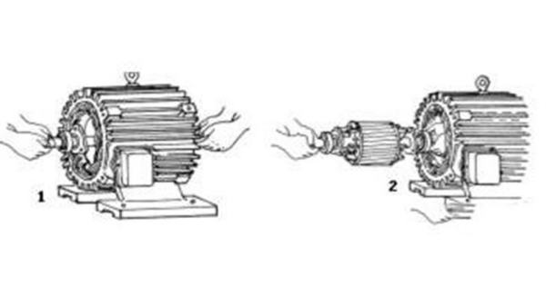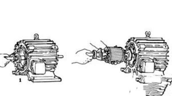 在拆卸较大的电机时,可两人一起操作,每人抬住转轴的一端,渐渐地把转子往外移,若铁