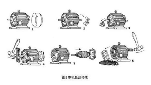 由于单相异步电机结构较三相异步电机简单,且重量轻、体积小,通常只要会拆卸三相电机的,就会拆卸单相电机。只有带启动开关的单相电机在拆卸时,相对要复杂一些,因此在拆卸时,注意不要碰坏启动开关。